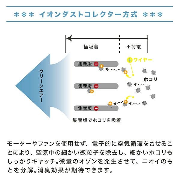1週間に一度は、集塵ユニットを掃除してください。毎日のお手入れをお勧めします。 1~2週間に一度は、本体のカバーを外し、内部を掃除機のノズル、ハンディモップ等を使って掃除してください。お手入れの頻度が十分でないと、本機の内部にホコリがたまり、雑音が発生する場合があります。特に梅雨の時期等、空気中の湿気が多くなると雑音がしやすくなりますので、よりこまめなお手入れが必要になります。本製品は、消臭を目的に微量のオゾンを発生しているため、僅かにオゾン臭が発生します。ご使用状況、または個人差により、臭いを強く感じたり、また感じにくい場合がございます。喘息・心臓病・呼吸器系疾患・アレルギー体質の方で不安がある場合は、ご使用前に担当医師にご相談ください。