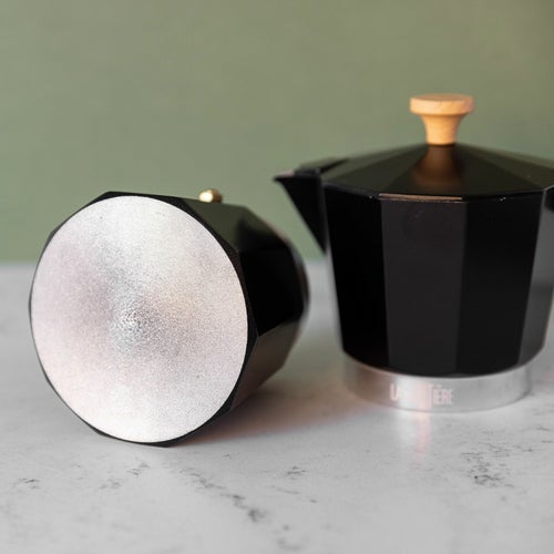アルミニウム製のエスプレッソコーヒーメーカー。 熱伝導性の高いアルミニウムにより、水を素早く効率的に沸騰させます。 従来のコンロ、ガスコンロ、セラミックコンロなど、さまざまなコンロで使用できます。