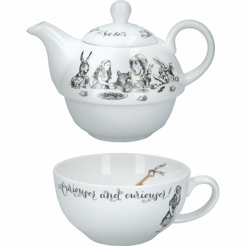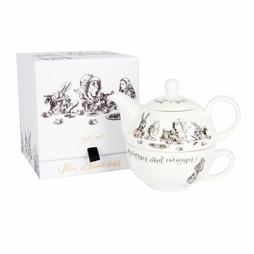 V&Aアリス・イン・ワンダーランドの「Tea for One」ティーポットとカップセットは、くつろいでリラックスするのに必要なすべてが揃っています。ミニチュアのファインチャイナティーポットは、広いリムのついたティーカップの中にきちんと積み重ねられ、可愛らしさとコンパクトさを兼ね備えたセットです。マッドハッターのお茶会のシーンが描かれています。これらはサー・ジョン・テニエル(1820年 - 1914年)のイラストに基づくアリスのトランプカードからインスパイアされています。「curiouser and curiouser!」という言葉が、目を引くルーピーフォントでティーカップを飾り、ハッターの有名な引用「we’re all mad here」が蓋を飾っています。各部品は輝くゴールドのディテールで美しく仕上げられています。