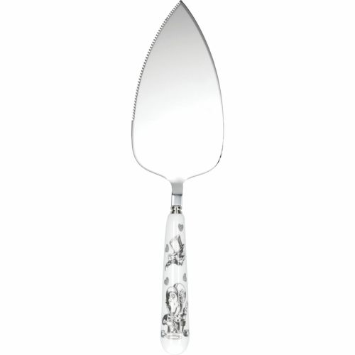 人生で美味しい手作りケーキを楽しむことは数少ない素晴らしいことの一つです。ですから、午後のティータイムや特別なイベントでは、V&Aアリス・イン・ワンダーランドコレクションのエレガントな磁器のケーキスライスを使っておしゃれに焼き菓子を提供してみてください。白い磁器のエレガントなハンドルには、サー・ジョン・テニエル(1820年 - 1914年)のイラストに基づく『アリス・イン・ワンダーランド』のカードゲームからインスパイアされたマッドハッターの白黒の画像が飾られています。ケーキカッターを裏返すと、目を引くルーピーフォントで「We’re all mad here」というアイコニックな引用が背面に広がっています。ギザギザのエッジと滑らかなエッジが一体となったステンレススチールのヘッドは、ケーキを切ってサーブするのに最適です。