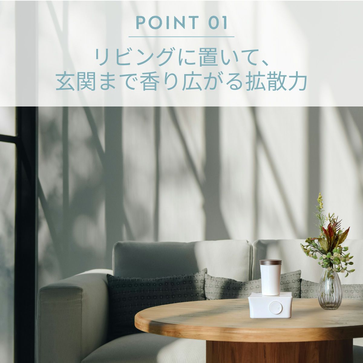 フレグランスをナノ化し、お部屋の隅々まで上品な香りが漂う上質な空間へ導きます。