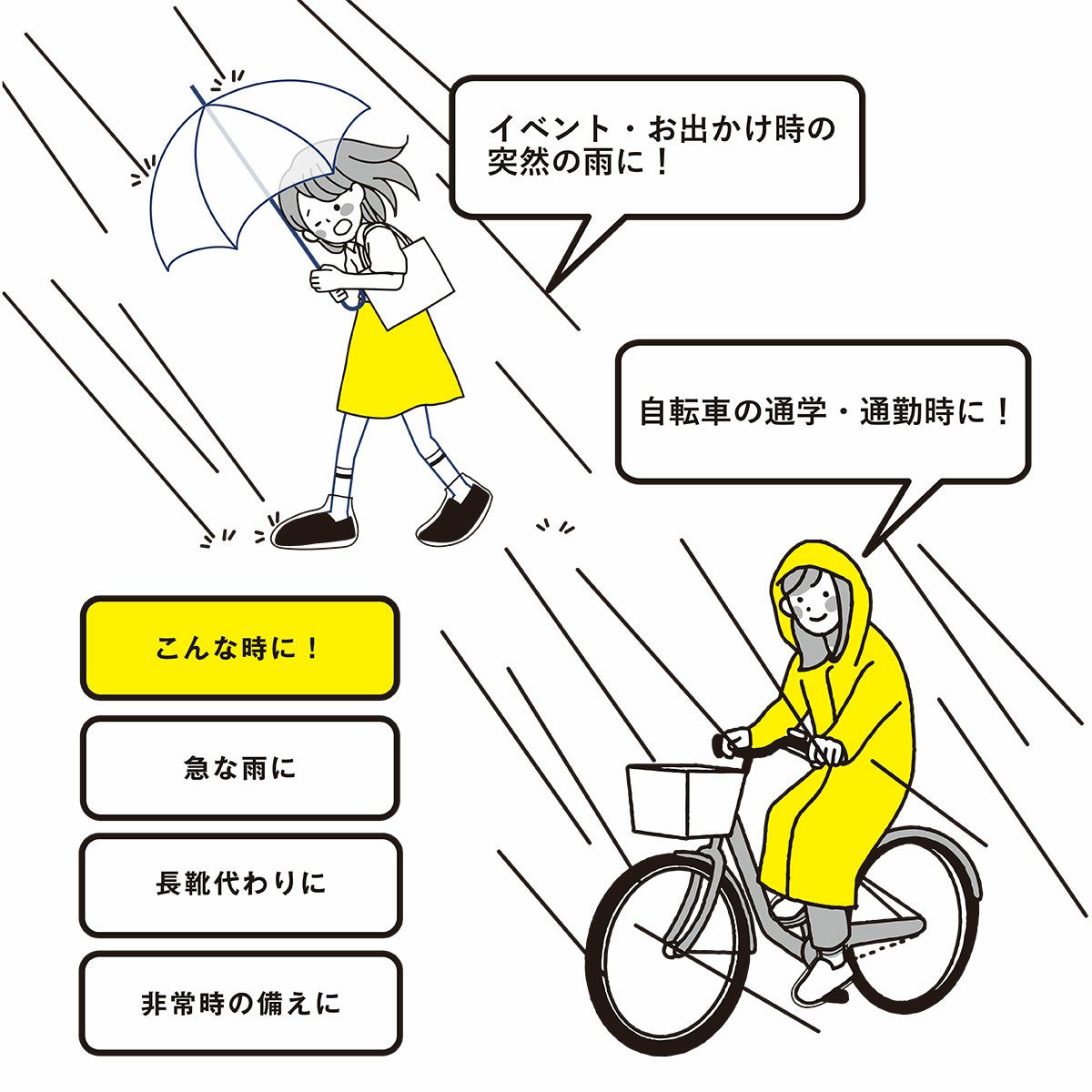 イベントやお出かけ時の突然の雨、自転車での通学・通勤中の急な降り出しにも。