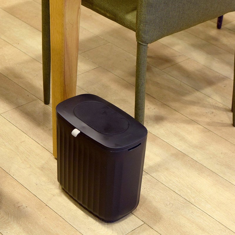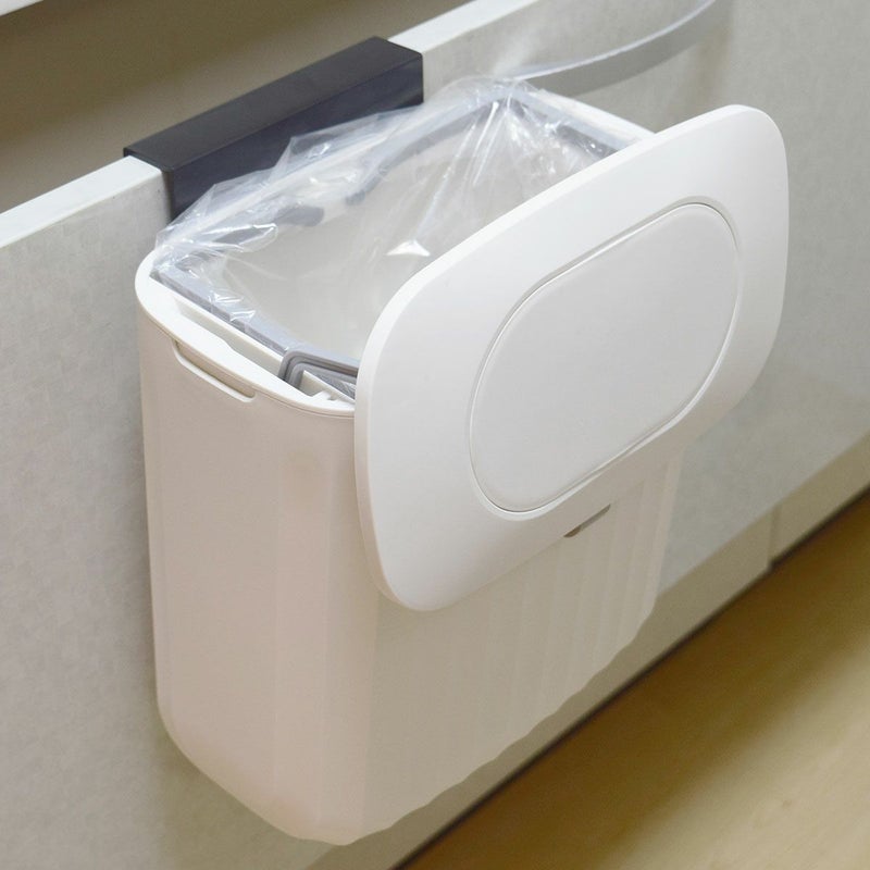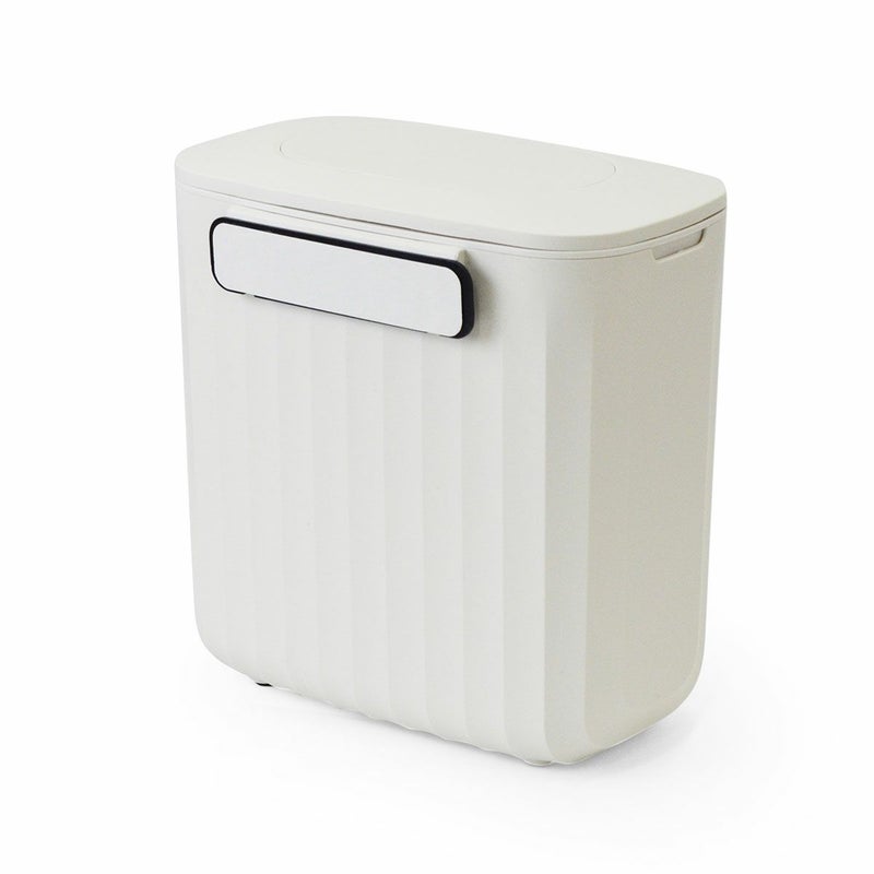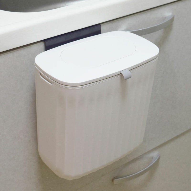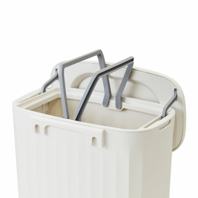 フタの開き方が2通りのダストボックス。 アジャスターを使い分けることで、キッチン扉に設置したり、両面テープで壁面に取り付けることも可能です。 両面テープでのアジャスターを使用した場合は、耐荷重約1.5kgです。 ドアフック用アジャスターを使用する場合は、厚さ2.5cmまでの扉に対応しています。 袋留め付きで、フタを閉めたときに袋が外から見えません。 容量7Lなので、キッチンのドアに取り付けて生ゴミ用のダストボックスや、デスク周り、洗面所、トイレなど幅広くご使用いただけます。