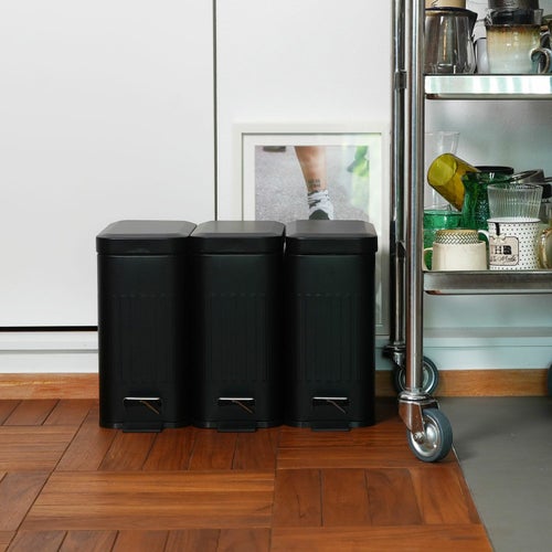 省スペースながら機能性に優れた、3分別対応のコンパクトなゴミ箱です。1つあたり5Lの容量を持つ3つの分別ゴミ箱。燃えるゴミ・資源ごみ・プラスチックなど、日常の分別に最適です。 ●静かに閉まるソフトクローズ機能。フタはゆっくりと静かに閉まる仕様で、開閉時の音を軽減。キッチンやオフィスなど、静かな空間でも快適にご使用いただけます。 ●取り外し可能なインナーボックス。それぞれのボックスは取り外し可能で、お手入れやゴミの入れ替えも簡単。 ●スタイリッシュなデザイン。マットホワイトとマットブラックの2色展開で、どんなインテリアにも自然に馴染みます。