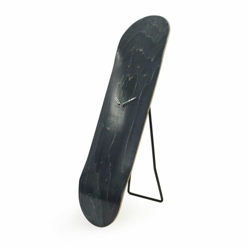 スケートボードの形状がモチーフのクロック。スタンド付きで、壁掛けはもちろん、スタンドクロックとしてもお使いいただけます。