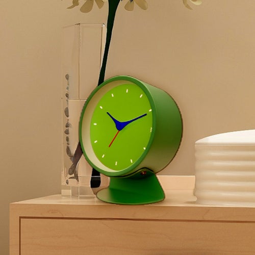 昔ながらの目覚まし時計を思わせるクラシカルなフォルムを、冷ややかなメタルの質感でモダンにアップデート。ただ時刻を確認するためだけでなく、空間のアクセントとしてインテリアの質を高めるテーブルクロックです。