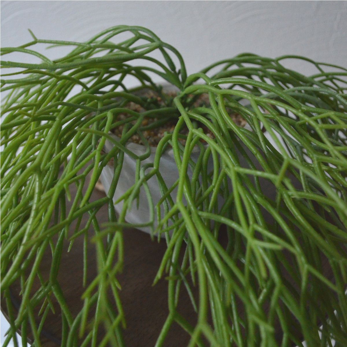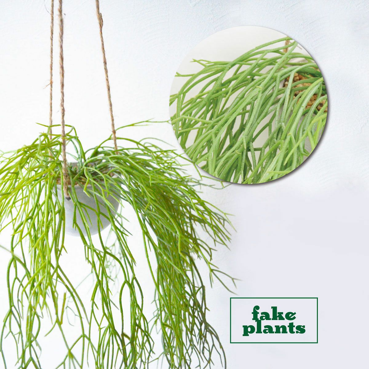 フェイクの観葉植物。 ハングタイプで、フックや天井に吊り下げできます。 時間が経っても枯れることがないため、いつでもお部屋の雰囲気をフレッシュに保てます。 気軽にグリーンを楽しみたい方はもちろん、日当たりのよくない屋内にお住まいの方や植物を育てるのが苦手な方にもおすすめです。 ハンドメイドで生産しておりますので、サイズや見た目も若干ばらつきがございます。あらかじめご了承ください。 フェイクグリーン 水やりや日当たり、風通しなどの室内環境の心配もなく、根腐れや通気不足、土の中のカビ、水のやり過ぎ、根詰まりなどが原因で枯れることもありません。 また、フェイクグリーンはインテリアアイテムとしてだけでなく、風水上でも運気を高めてくれるとされ、置き場所や飾り方を意識する方も少なくありません。 緑は「健康運を上げる」とされ、観葉植物のグリーンは空間にある負の気を吸収してくれるとも言われています。 そのため、人が集まりやすいリビングや玄関、頻繁に使用するトイレなどに置くと良いと言われています。 リプサリス 【特長・概要】 リプサリスは繊細な茎を次から次へと多方向に伸ばす、サボテンと同じ多肉植物です。 リプサリスという名前は、ギリシャ語で枝編み細工という意味に用いられる「rhips」が由来しています。学名は「Rhipsalis」となります。 リプサリス・ラムローサの和名である「梅が枝」は、小枝の姿が梅の枝に類似していることから付けられました。 また、リプサリス・ピロカルパという品種には、フロストシュガー、朝の霜、髭赤葦という別名があります。