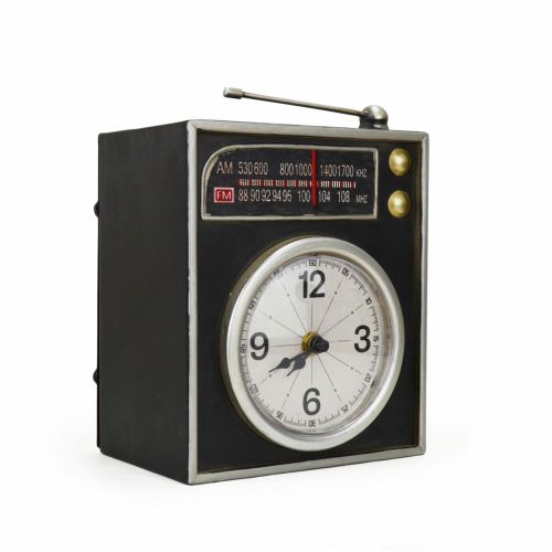 レトロなラジオのデザインがモチーフとなった存在感のあるスタンドクロック。貯金箱付き。レトロな雰囲気を楽しめます。 【サイズ】 W16xD11xH22cm 【本体重量】 700g 【原産国】 中国