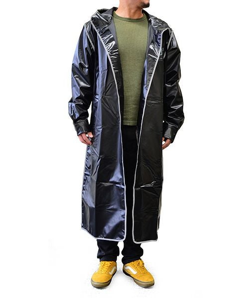 急な雨に、さっと羽織れるレインコート。持ち運びしやすいバッグ付きで、毎日の通勤・通学に。 パイピングテープがリフレクターになっているため、夜でも安心。 サイズ:フリーサイズ (おおよその展開サイズ)肩幅:52cm、身幅65cm、袖丈65cm、着丈117.5cm