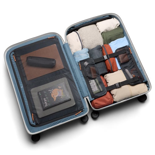 ●キャリーケースを立てた際に荷崩れしないよう、内側上部に固定式のパッキングキューブを配置