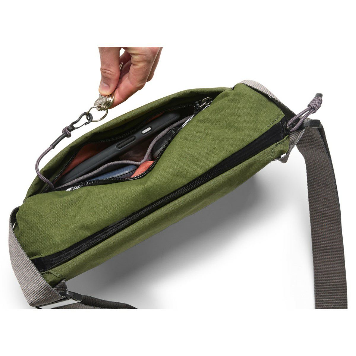 街中の移動からアウトドアまで活躍するベルトバッグ。取り出しやすさと収納しやすさにこだわったデザインです。