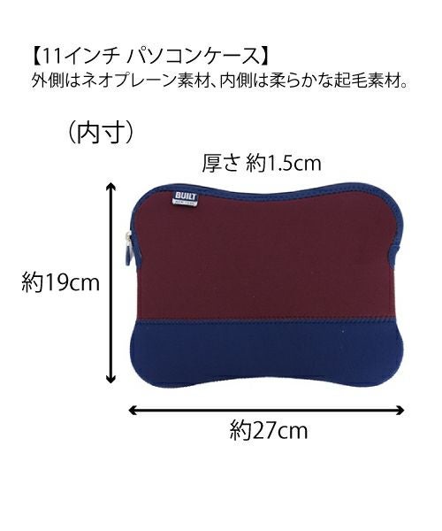 11インチのパソコンを持ち運ぶのにオシャレなPCケース。 外側はウェットスーツに使用されるネオプレーン素材で、丈夫で汚れがつきにくく、手洗いが可能です。内側は柔らかな起毛になっているので傷から大事なパソコンを守ります。 ファスナーは角までしっかり開く型なので、出し入れの際に傷つく心配も軽減されています。 ※パソコンの機種によってはサイズが合わない場合もございます。
