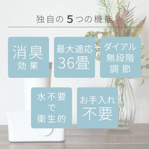 面倒なお手入れも一切不要。水を使わないので雑菌の繁殖を気にせず、いつでも清潔にお使いいただけます。フレッシュし、いつまでも香りが持続します。