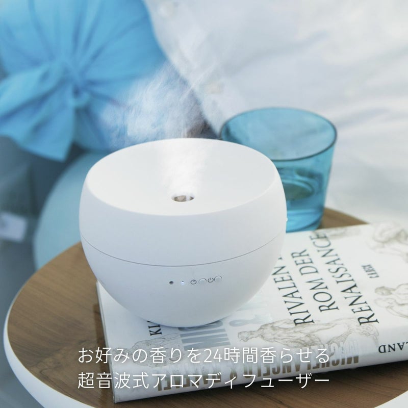 連続稼働約8時間のスタイリッシュな超音波式アロマディフューザー。インターバルモードを搭載し、間隔をあけることで連続運転より長時間稼働します。10分運転、20分電源オフ、10分運転の間隔で稼働し、24時間連続でご使用いただけます。アロマオイルたった2滴で、お好みの香りが24時間持続。 ■消費電力:7.2W ■OFF-ON -インターバル機能付き(10分の運転後20分の停止の機能) ■連続運転時間:ノーマル…8時間 インターバル…24時間 ■タンク容量…100ml