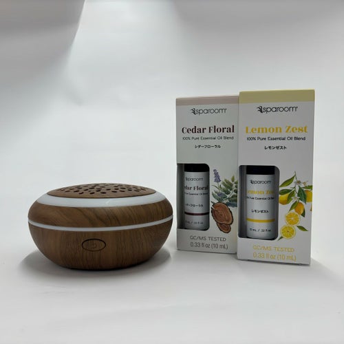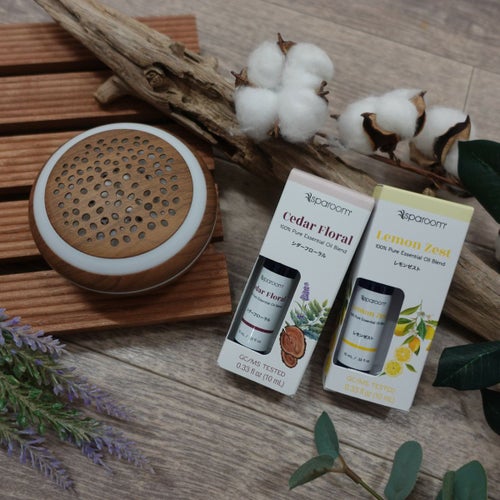シダーウッドやイランイラン、シナモンなどの温かみのある「シダーフローラル」と、爽やかなシトラスをブレンドした「レモンゼスト」を組み合わせました。