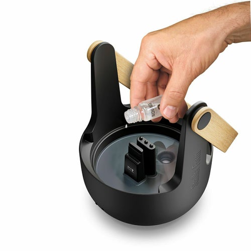 屋内外で使用できるバンブーハンドル付のモバイル アロマ ディフューザー。