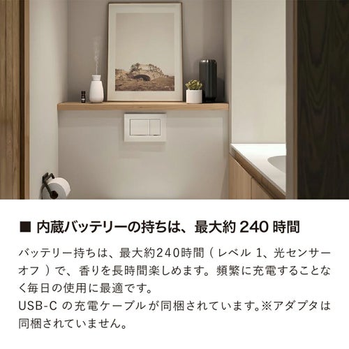 バッテリー内蔵で使う場所も選ばず、インターバル方式でずっと香りを感じられ、光センサーで便利な使い方も多数!