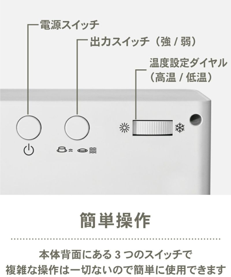室内を早めに温度調整したい場合、出力を「強」にするとより早い段階で設定温度に変わります。スイッチで簡単に操作できます。