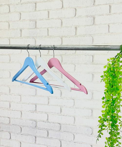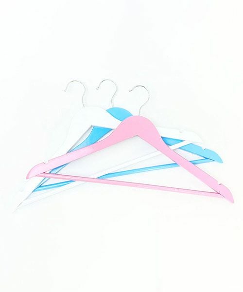 衣類が型崩れしにくい立体形状の木製ハンガー6本セットです。 パステルカラーの組み合わせが可愛らしく、衣類をより一層引立てます。 ピンク、ブルー、ホワイトの3色セット。 各色2本入り。 フック部分は回転式なので、クローゼットはもちろんドアに引っ掛けたり 用途に合わせてご利用頂けます。 1本あたり重量:100g
