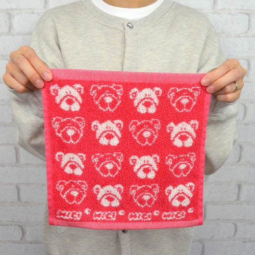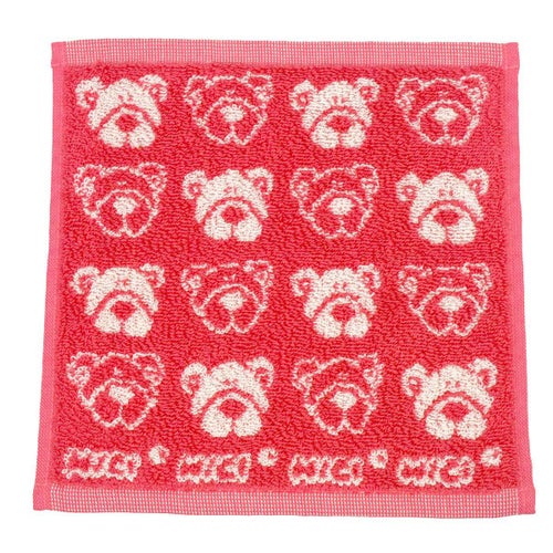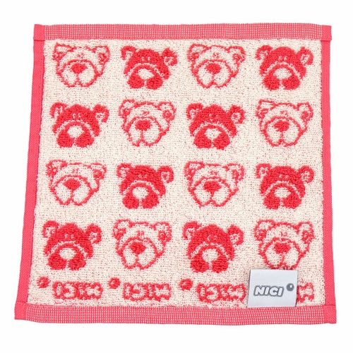 こちらは、肌触り・吸水性の良いジャガード織で仕上げた NICI ハンドタオル25×25㎝ ラブベアパターン ピンクです。