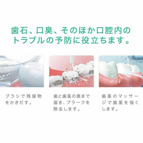 1400-1800回/分の振動数で通常の歯磨きでは取り切れない隙間汚れや歯石の除去ができます。