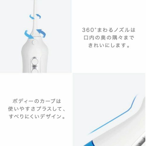 360度回転するノズルで、届きにくい奥歯や舌汚れもすっきり!