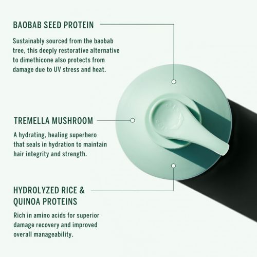 ノンシリコン処方で、ライスプロテインと加水分解キヌアが髪をなめらかに整え、縮れ毛を防ぎます。バオバブオイル、オリーブオイル、ヴィーガンスクワランオイルなど、栄養たっぷりの最高品質の天然保湿成分を配合し、髪をやわらかく健やかに保ちます。