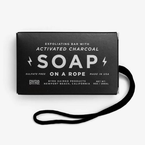解毒作用のある活性炭と角質除去の作用があるホホバビーズを配合したソープ。「保湿の王様」と呼ばれるシアバター配合で洗浄、角質除去、保湿まで、これひとつでできる優れもの。255gはロープ付きでシャワーヘッドに引っ掛けられる仕様になっています。