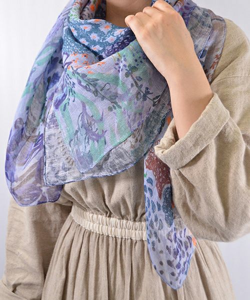 グリーンと共に生きるよろこびを表現したストールです。 モチーフは北に咲くハーブの草花。スクエア型の麻ガーゼは巻き方によって異なる柄の雰囲気を楽しむことができます。 シンプルなワンピースやシャツに合わせて首元を華やかに演出して下さい。※商品の発送は4月中旬頃を予定しております。 通常商品を一緒にご注文いただくと予約商品と同送となりますので予めご了承ください。