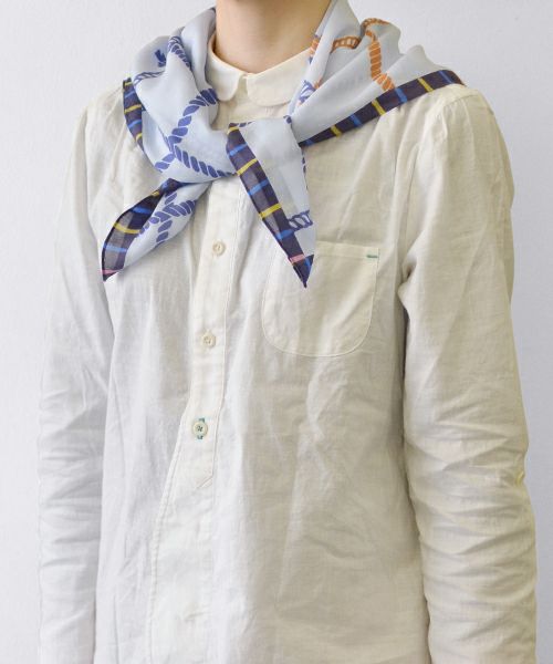 マリン感あふれるロープの柄のスカーフです。薄手で小さめサイズなのでコンパクトに使えます。クラシックなデザインながらグリデカナらしくポップな印象に仕上げました。(大阪)
