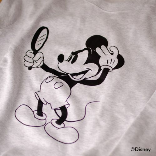 BYRD限定の、手鏡を持ちスタイリングをする「ミッキー」のスペシャルなグラフィックをフロントに落とし込んだトレーナー。
