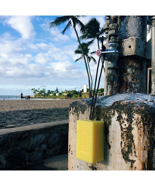髪、顔、体、全身に使える石鹸。サーフボードのリーシュカップ(リーシュコードとサーフボードを繋ぐジョイント部分)をイメージしたドローコード付なので、シャワーコックに掛けて使うと便利です。パイナップルとバニラをベースにしたトロピカルココナッツの香り。