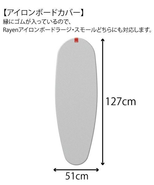 フェルト、クッションフォーム、コットン、アルミニウムの4 層構造のアイロンカバーです。 カバーのコットンにアルミコーティングを施したため、熱伝導性に優れ、効率よく作業ができます。また、熱の反射効率が高く、両面プレスの効果があります。 縁にゴムが入っているので、Rayenアイロンボードラージ・スモールどちらにも対応します。