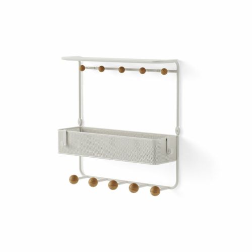 エスティーケは、トップトレイが組み込まれた穴あき金属バスケットと、鍵、メール、ジャケット、バッグ、その他の日常の必需品を収納するための10個のフックを備えています。