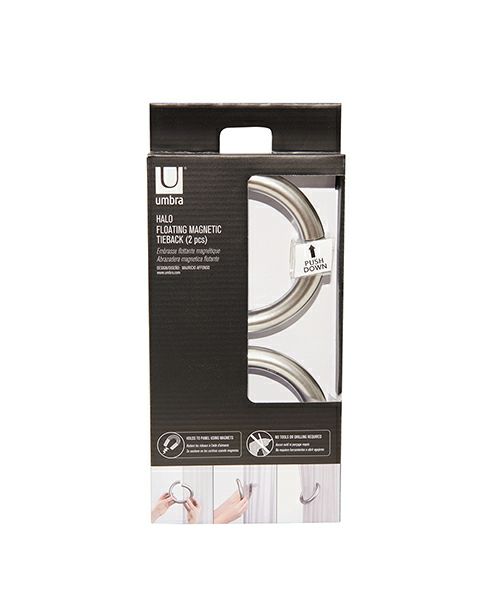MAURICIO AFFONSOデザイン。シンプルでモダンな円状のカーテンホルダー。先端にマグネットが付いていて、ねじるようにスライドさせて挟むだけでオシャレに留まります。壁に穴を開ける必要が無いので、工具は一切使わないです。壁などに固定せず自由に使えるので様々なタイプのカーテンに対応し、お好みの高さや留め方で使えます。