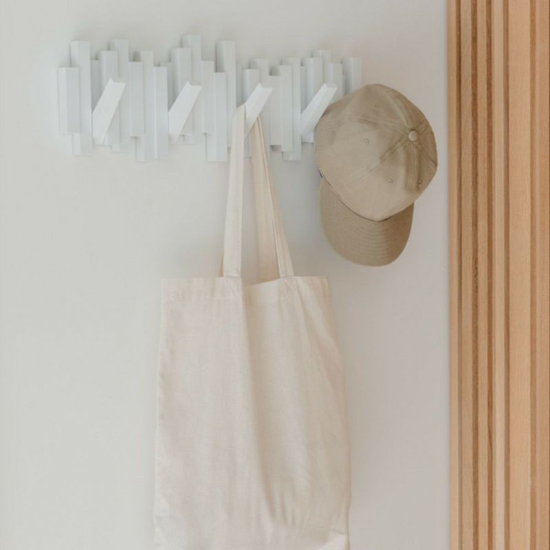 使わないときはフックをたたんでおけて、飾りのようなスッキリした佇まいに。玄関・寝室・廊下・キッチンなど、生活のさまざまなシーンで空間を整えながら便利に使えます。