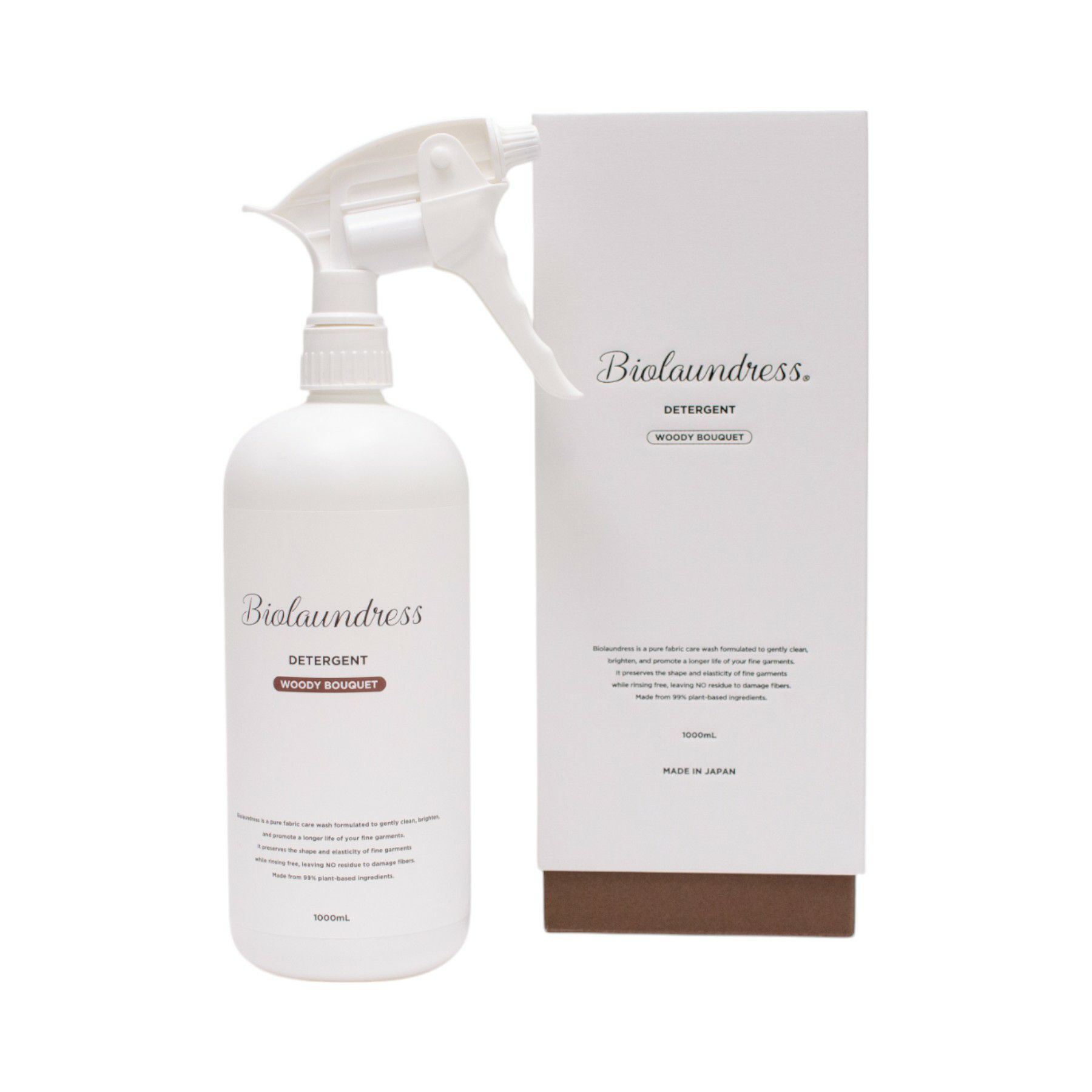 Biolaundressのスプレイヤータイプボトル(500ml/1,000ml)は、オリジナルのBOX入り。