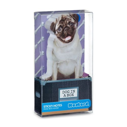 立てられるボックスに入ったかわいらしいパグのダイカットフセン。 箱から出てきたような仕草が、かわいらしいデザイン。 普通に付箋として使うのはもちろん、しおりとしてページからちょっと覗くように使ってもかわいいです。 150枚組。