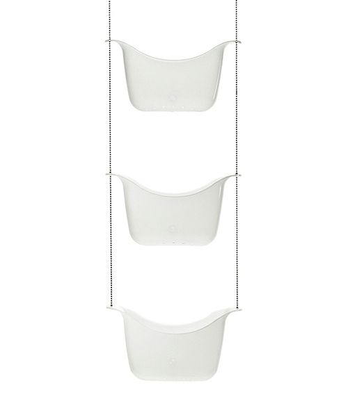 3つの容器が連なったバス収納用品です。 タオルバーやシャワーフックに引っ掛けて使用できます。 ボディーソープやシャンプーなどのボトルやボディスポンジなどの収納に使用できます。 連結しているボールチェーンはステンレス製です。 容器の底には穴が開いているので、自然と水が切れる設計です。 Designed by:DAVID QUAN