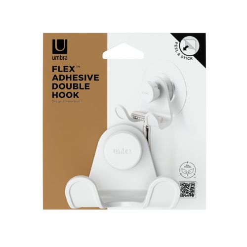 フレックス アドヒーシブ ダブルフックで、小さなバスルームの必需品を引っ掛けて簡単にアクセスできるようにします。