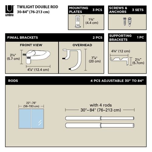 トワイライトは強力で安定したロッド直径 1.9cmで、軽量から中程度の重量のカーテンを掛けられる様に作られています。