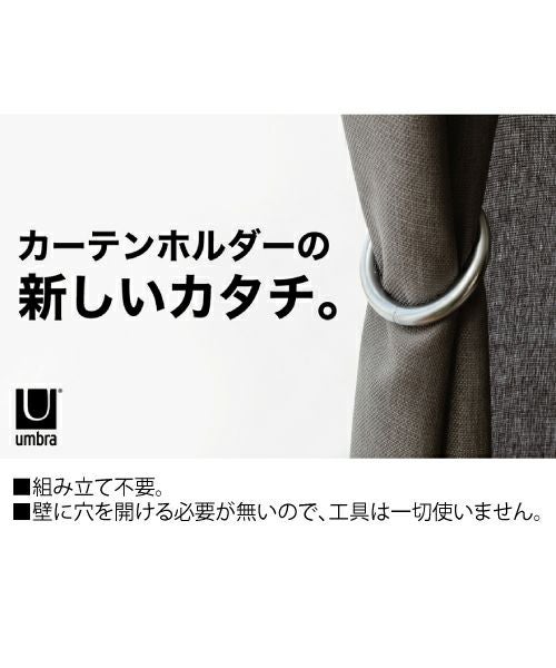 MAURICIO AFFONSOデザイン。シンプルでモダンな円状のカーテンホルダー。先端にマグネットが付いていて、ねじるようにスライドさせて挟むだけでオシャレに留まります。壁に穴を開ける必要が無いので、工具は一切使わないです。壁などに固定せず自由に使えるので様々なタイプのカーテンに対応し、お好みの高さや留め方で使えます。