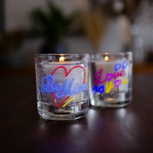 ガラスジャーに入ったキャンドルは、カラフルなメッセージで目を引くデザイン。それぞれのデザインがクールなネオンフラッシュでライトアップされ、ムードを一層華やかに演出します。光センサーが感知するたび、あなただけのメッセージが輝き出します。使い切りタイプで、思い出とともにそっと消える儚さも魅力のひとつ。ギフトボックス入りで、大切な人への贈り物にもおすすめです。