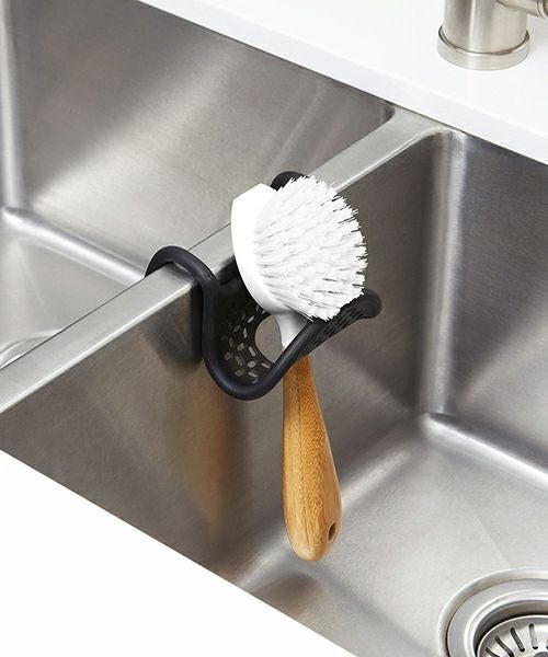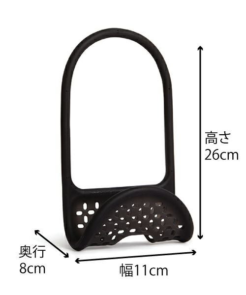 Eugenie de Loynes & Jordan Murphyデザイン。 蛇口に引っ掛けて使うシンクキャディー。 スポンジやブラシを収納する事ができ、穴が空いているので水切れと通気性も良いです。本体部分はワイヤーが入っており、使う場所に応じて自由に形が変える事ができます。引っ掛けるタイプなので、吸盤で付ける商品のように落ちてくる心配がありません。