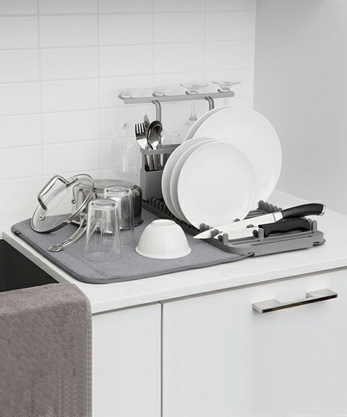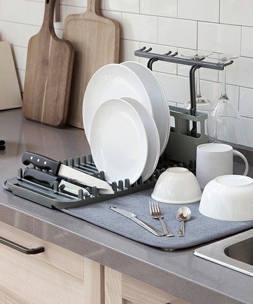ディッシュラック、ワイングラスホルダー、カトラリーホルダー、ドライングマットを1つにまとめたものです。