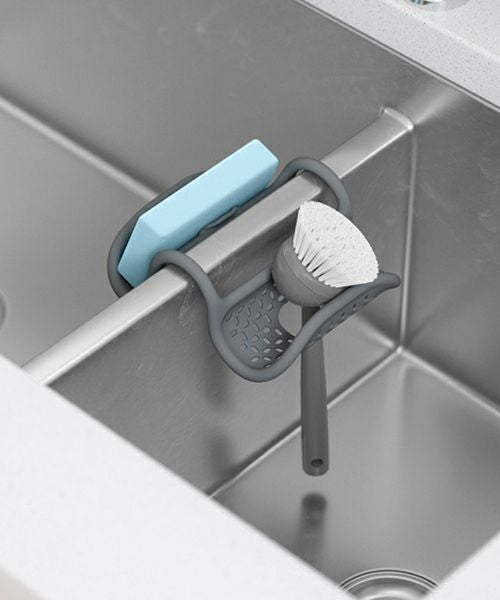 シンクや、カウンターの端に合わせて曲げることができる収納アイテムです。 水場でも滑りにくいように出来ており、排水用の穴があいています。 収納用の穴もあいているので、長さのあるブラシなどを掛けておくことができます。 清潔に保つ為、定期的に本体を暖かい石けん水ですすいで下さい。重量:100g