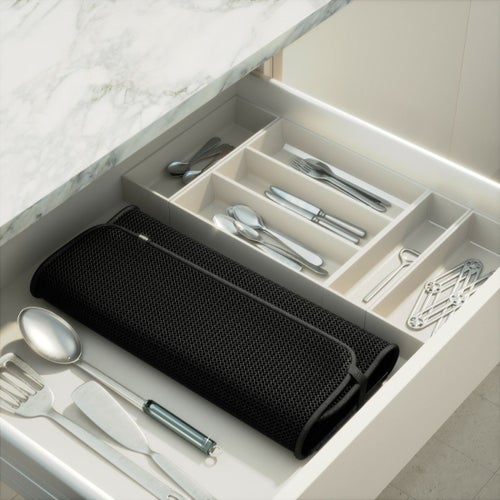 用途の広いデザインは、食器棚、調理器具キャディ、ステムウェアホルダー、洗濯機で洗える乾燥マットを組み合わせています。