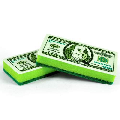 汚金!?洗っちゃえば綺麗でしょ! ブラックジョークなネーミングのお札型スポンジ2個セット! 洗うものによって両面使い分けましょう。 ちょっとしたギフトにもおすすめです。