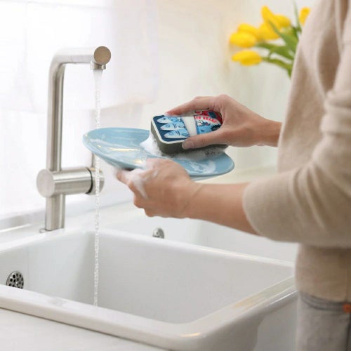海外のスーパーマーケットに並んでいそうな、おしゃれな缶詰デザインのパッケージ。 中には魚のイラストがプリントされたスポンジが2つ入っています。 生活感が出がちなシンク周りを、スタイリッシュでユーモラスな空間に変えてくれます。