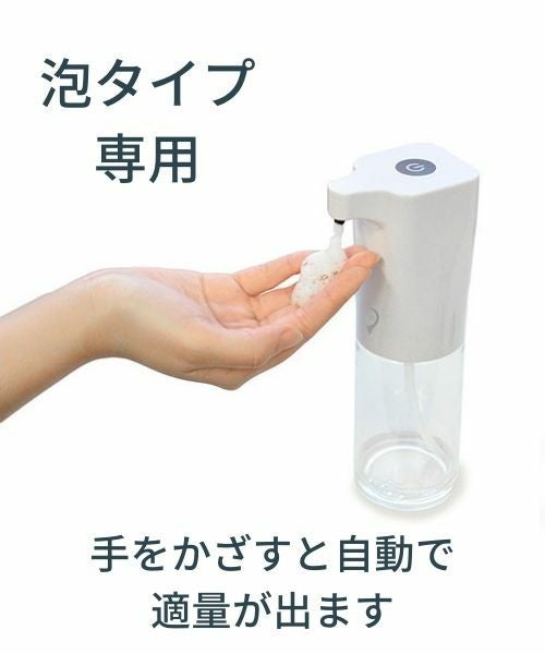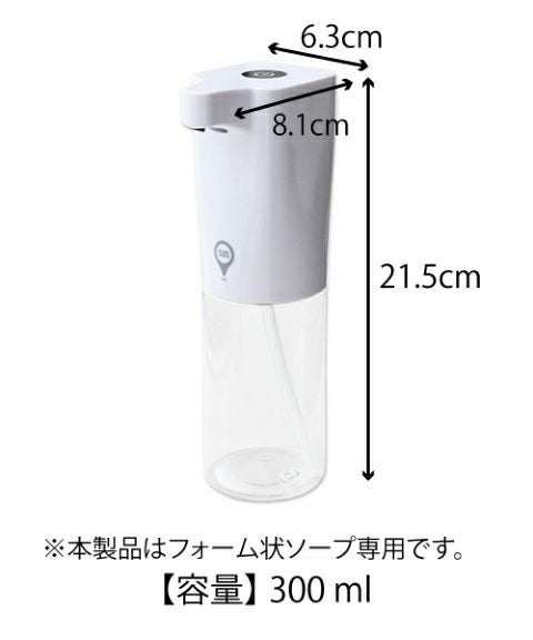 手をかざすだけで、自動で出てくる泡ソープディスペンサーです。 泡タイプのハンドソープ・キッチン洗剤用に使用できます。 電池式&生活防水対応で、キッチンや洗面所、玄関でも安心してご使用できます。 ●泡タイプのハンドソープ・キッチン洗剤用をお使いいただけます。希釈も可能です。(目安の比率=1:3 リキッドソープ:水) ●単4乾電池×4本(別売) ●容量:300 ml ジェル・液体用はこちら